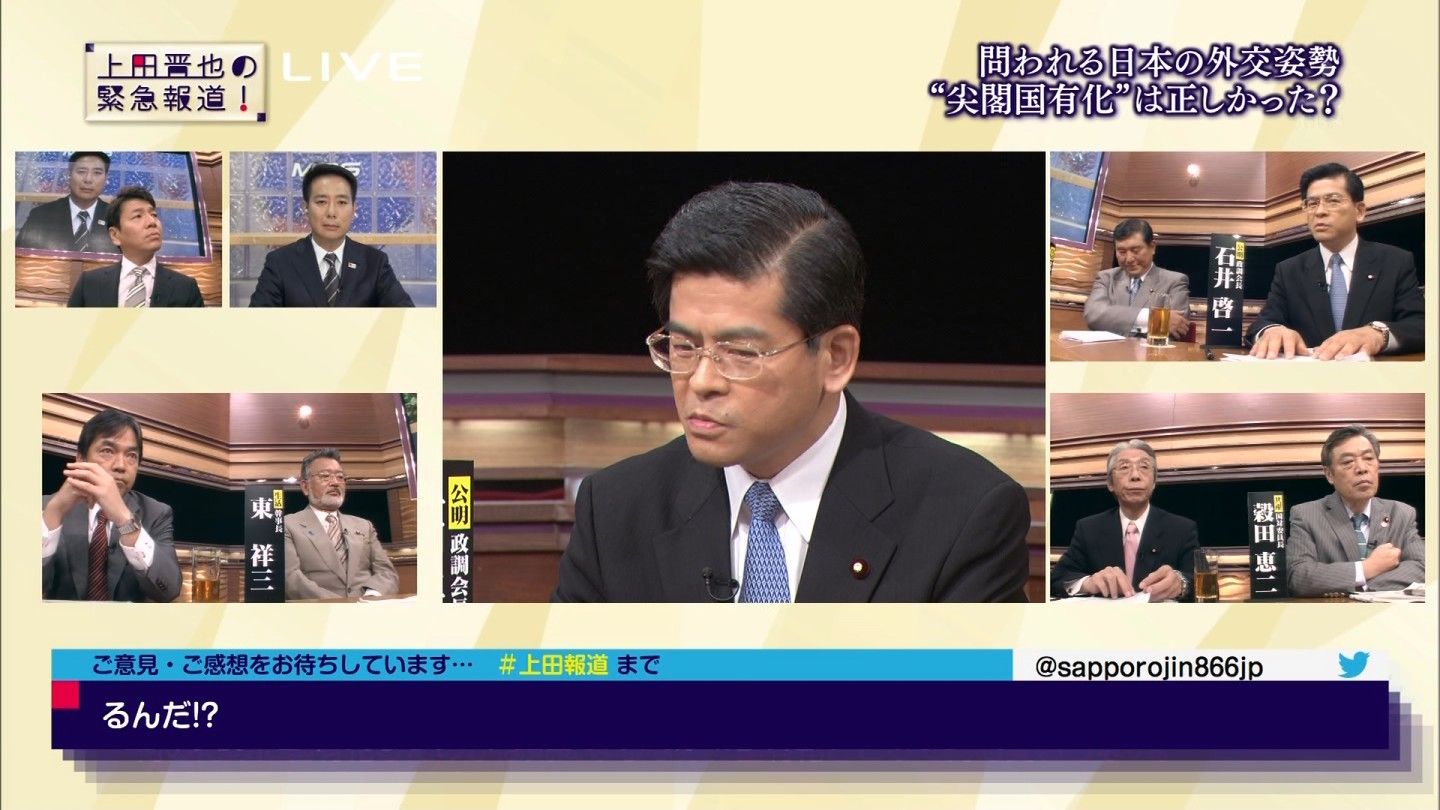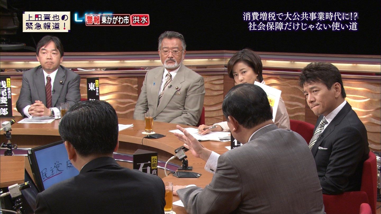 上田晋也の緊急報道 2012年9月30日放送ニッポンを考えよう!国民会議プロジェクト くりぃむしちゅー上田晋也が有力政治家と真剣生討論! 消費税・領土問題・迷走国会…“決められない政治”に上田が斬りこむ。