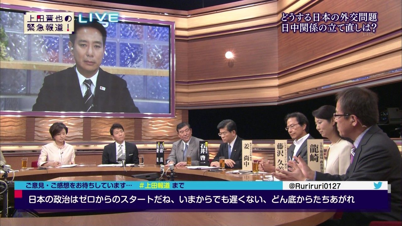 【出演】 上田晋也、膳場貴子、姜尚中、前原誠司、石破茂、小沢一郎、東祥三、浅尾慶一郎、石井啓一、穀田恵二、又市征治、他